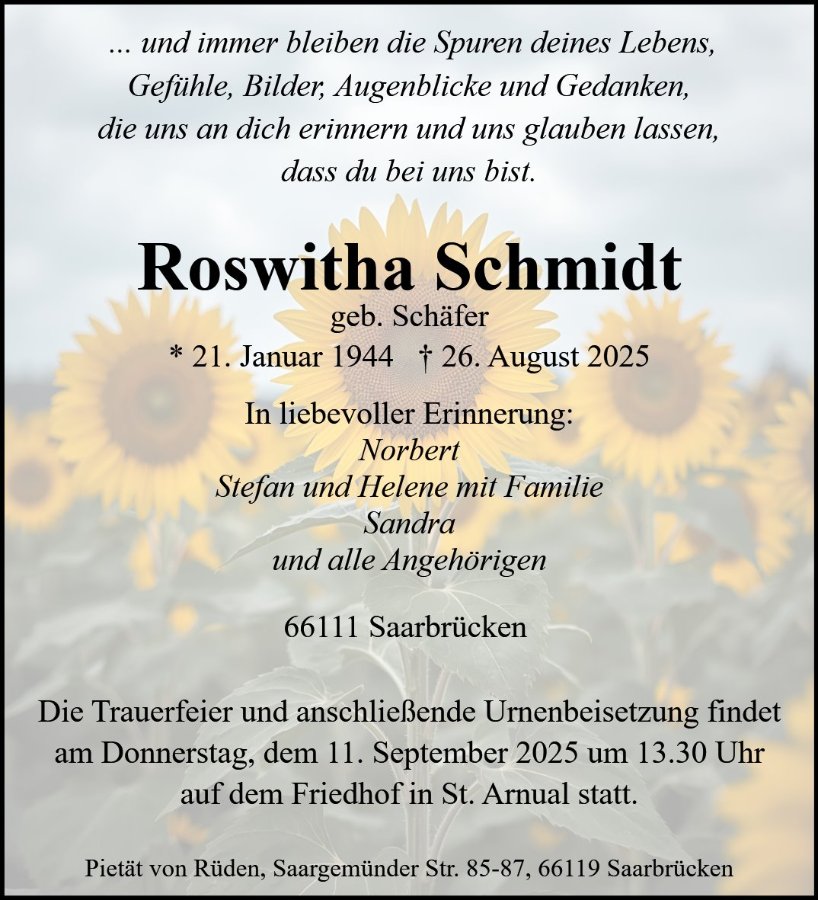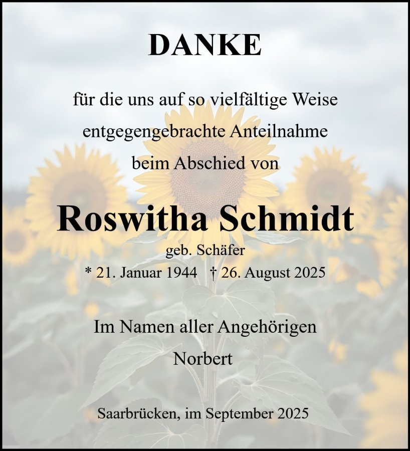 Roswitha Schmidtgestorben am 26. August 2025